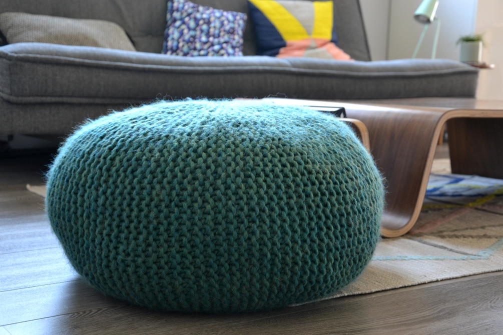 Instructions pas à pas (photos à l'appui) pour tricoter un pouf de 55 cm de diamètre / 30 cm de haut.